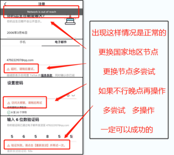 ## tiktok注册账号以及如何切换地区 ## 一.注册tiktok账号 ### 苹果手机:手机设置-隐私-定位服务-关闭 ### 1、先注册国外的邮箱 ### [点我购买现成tiktok账号](http://app2288.cn/ "点我购买现成tiktok账号") ### [点我购买现成tiktok账号](http://app2288.cn/ "点我购买现成tiktok账号") ### [点我购买现成tiktok账号](http://app2288.cn/ "点我购买现成tiktok账号") > 使用国内QQ邮箱,有一定概率注册不成功,可以自行测试一下,如果注册不了,那则需要先注册国外的邮箱 打开这个网址 > ### https://outlook.live.com/owa/ 点击创建免费账户,根据提示可以自行注册国外邮箱 ### 2、注册tiktok ### 注意:如果已经注册好账号了登录提示下面问题。 ### `Too many attempts. Try again later` ### ==如果已经注册好账号无法登录一直是操作频繁等问题,请点击忘记密码选项,重置修改密码再次登录就好了!== ### 如果还没注册过tiktok账号,按下面的方法进行操作 ### 方法一 使用tiktok软件注册 连接加速器,使用国外的网络(别使用香港节点),打开tiktok软件 #### ==建议购买付费节点注册,免费共享节点大概率无法注册== #### 购买付费节点专享超高速网络冲浪,节点除tiktok,还可以使用谷歌、ins、youtube、twitter等其它国外软件 ### [## 🏆高速稳定飞快专用节点[点击购买]🏆](https://xiniu2028.com/) https://xiniu2028.com/ #### ↓操作步骤如下↓ #### 点击注册、点击电子邮件,把刚才注册的国外邮箱填写进去  #### 出生日期 选择生日的时候,一定要选择大于18岁的,年龄选择的过小,会有未成年保护 账号注册成功以后也会有一个锁定状态,而且无法点赞评论的。 #### 设置密码 这一步需要8位以上 包含字母+数字+特殊字符(!@#$%^&这种就是特殊字符)举例:A123456!  #### 设置用户名 注意用户名不能重复 如果出现超时,点击左上角直接跳过即可。 #### 要求APP不跟踪  如果仍然显示登录错误,退出Tiktok,使用付费节点注册,成功注册几率达到98%!! ⭐ 注册TikTok账号专用节点[点击购买]⭐ ### 方法二 使用网页版tiktok注册 #### ↓操作步骤↓ #### 打开下面网页tiktok注册账号,使用苹果手机自带浏览器,或者使用谷歌浏览器注册 #### 链接小火箭后打开(别使用香港节点) https://www.tiktok.com/profile?lang=zh-Hant-TW   > ==注:图片是之前做的,所以推荐QQ邮箱,但是tiktok规则变化,现在QQ邮箱大概率注册不了,按最上面的教程注册outlook邮箱后再来注册==  ### 建议使用付费节点注册,免费试用节点大概率无法注册 ### [## 🏆高速稳定飞快专用节点[点击购买]🏆](https://xiniu2028.com/) ### http://43.128.14.130:43521/#/register?code=8epLdQOp ### ==备注:如果出现操作频繁无法登录等问题,请通过找回密码选项,修改了密码再次登录就好了!== ## 二.TikTok换区方法 1.打开个人主页-点击设置与隐私  2.点击设置规则–选择国家地区