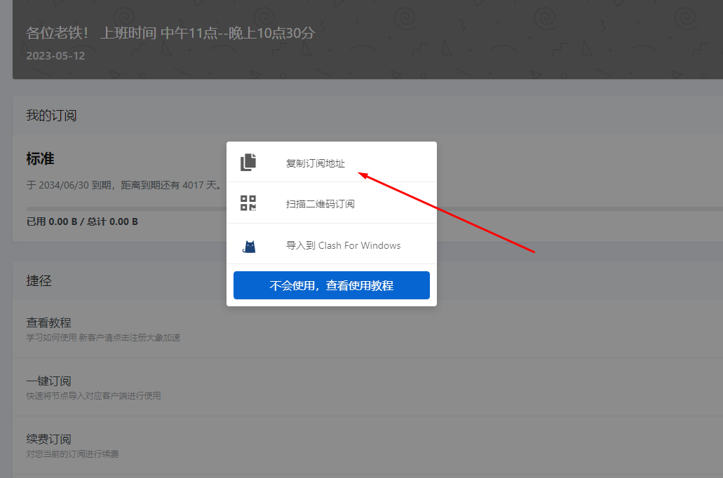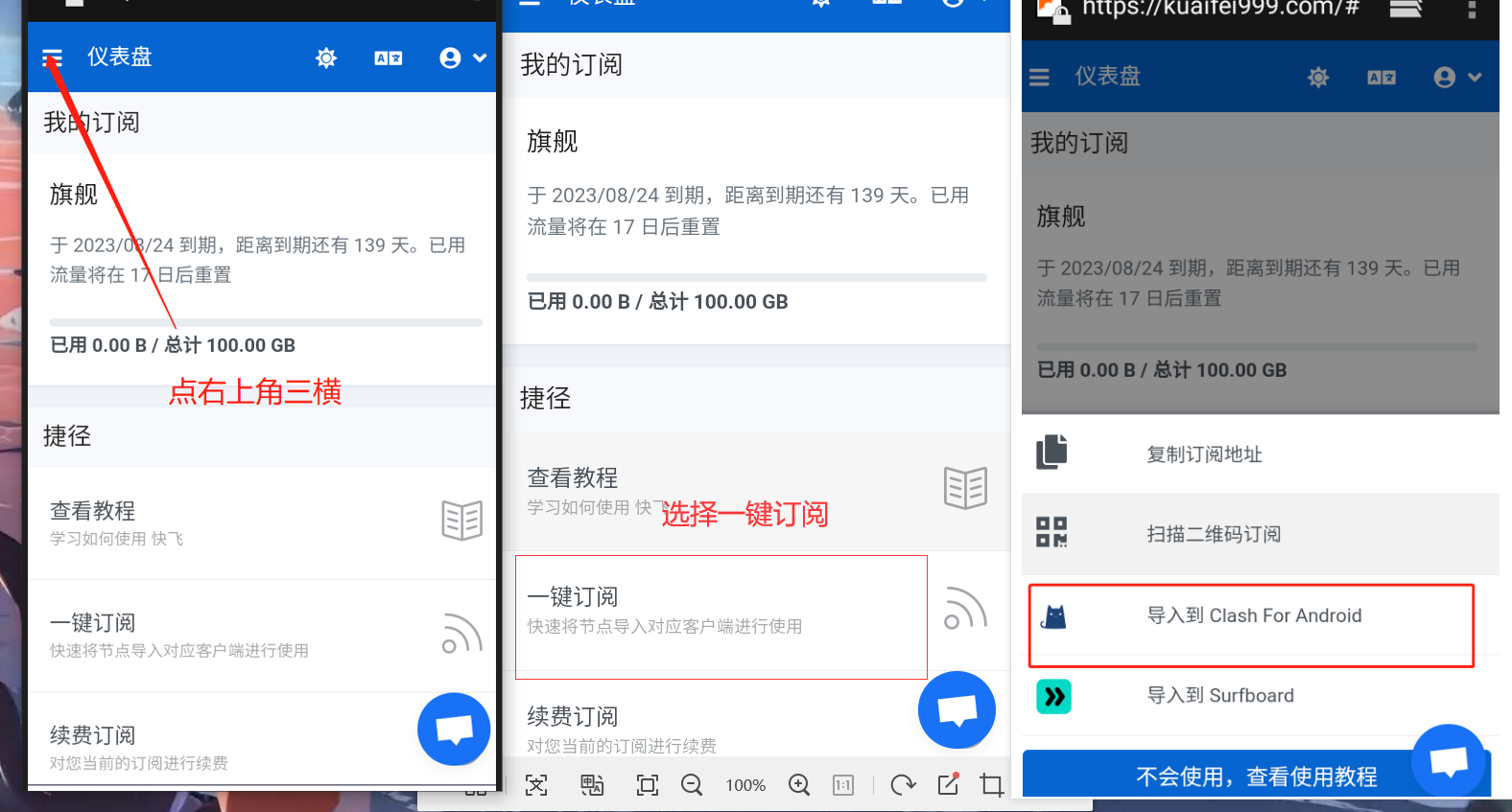 4 购买订阅后打开犀牛加速官网 往下滑点击一键订阅 - 一键导入clash for android