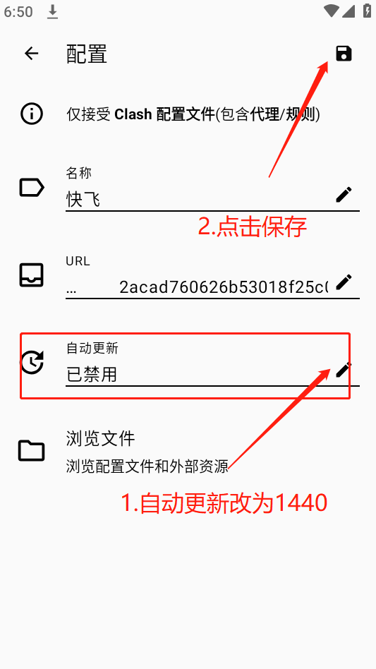 4.1 进入配置界面 自动更新改为1440 其他不动 点击右上角保存