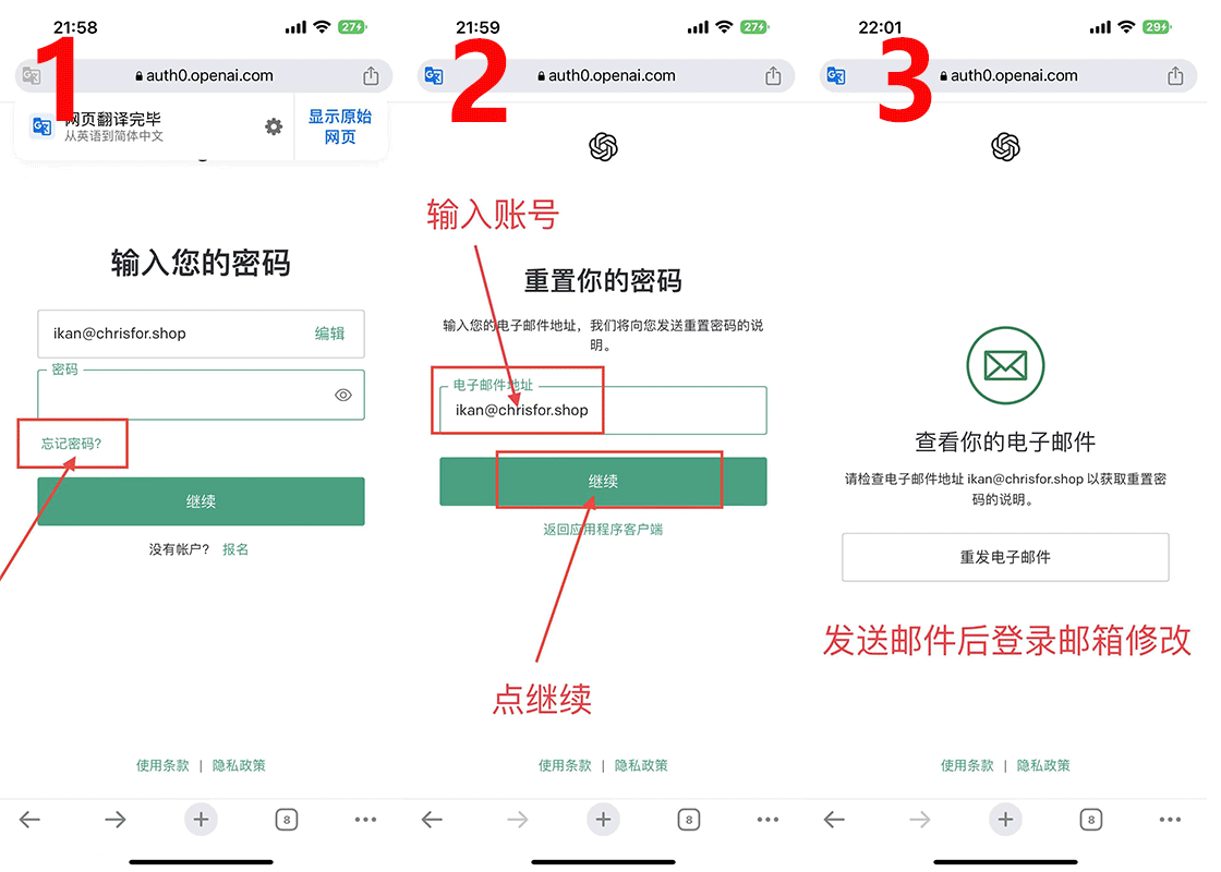 ### chatgp登陆方法:使用账号和密码登陆, ### chatgp官网登录地址:https://chat.openai.com/ ### 邮箱登陆地址https://www.gmx.net/ ### ==下面是chatgp修改密码图文教程== ### 1,打开登录页面,输入买到的账号,点忘记密码,然后重置密码,发送到买到邮箱地址!  2.打开邮箱登录网址:https://www.gmx.net/ 打开后点登录邮箱,然后输账号和密码进入邮箱!邮箱里面有一封改密码邮件的!