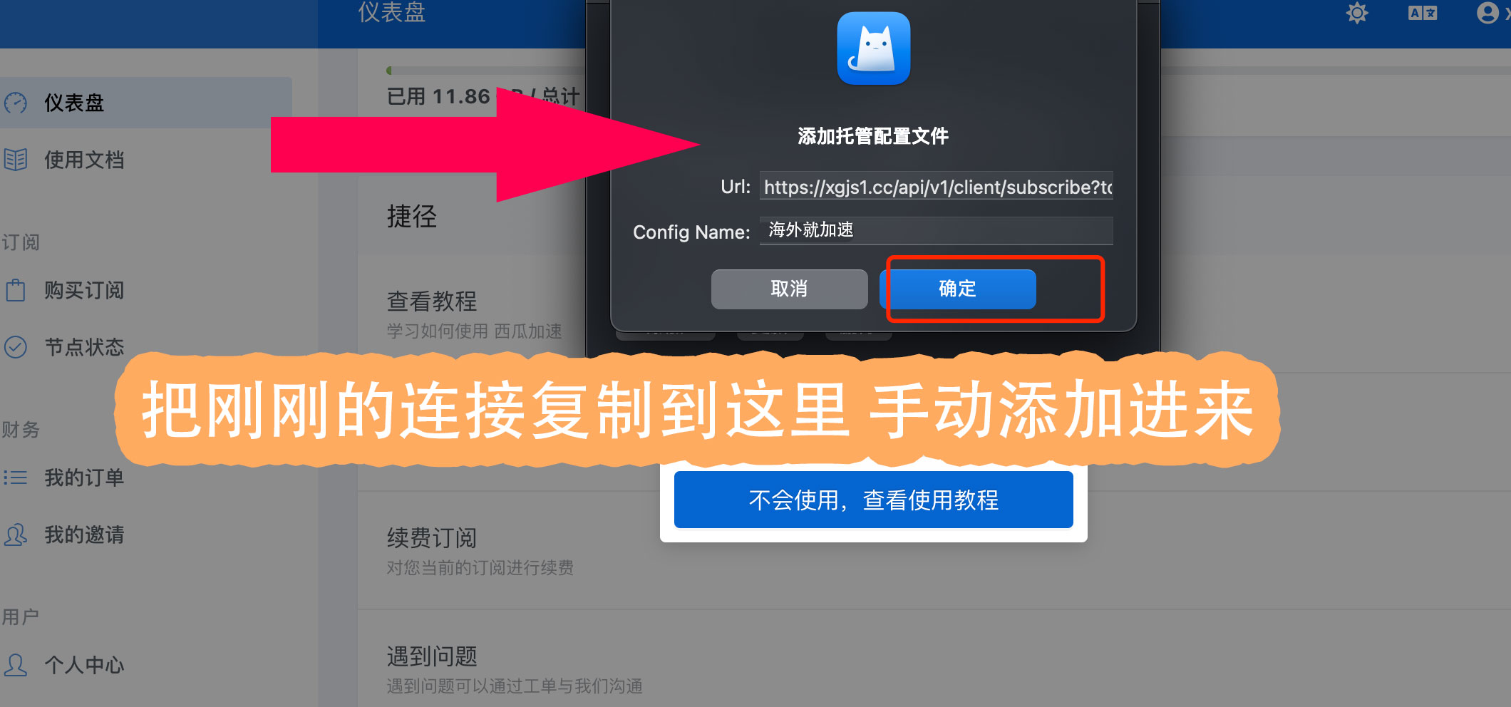 4.4 点击导入到ClashX 注意:必须用苹果浏览器去导入,不能用微信或者其他浏览器