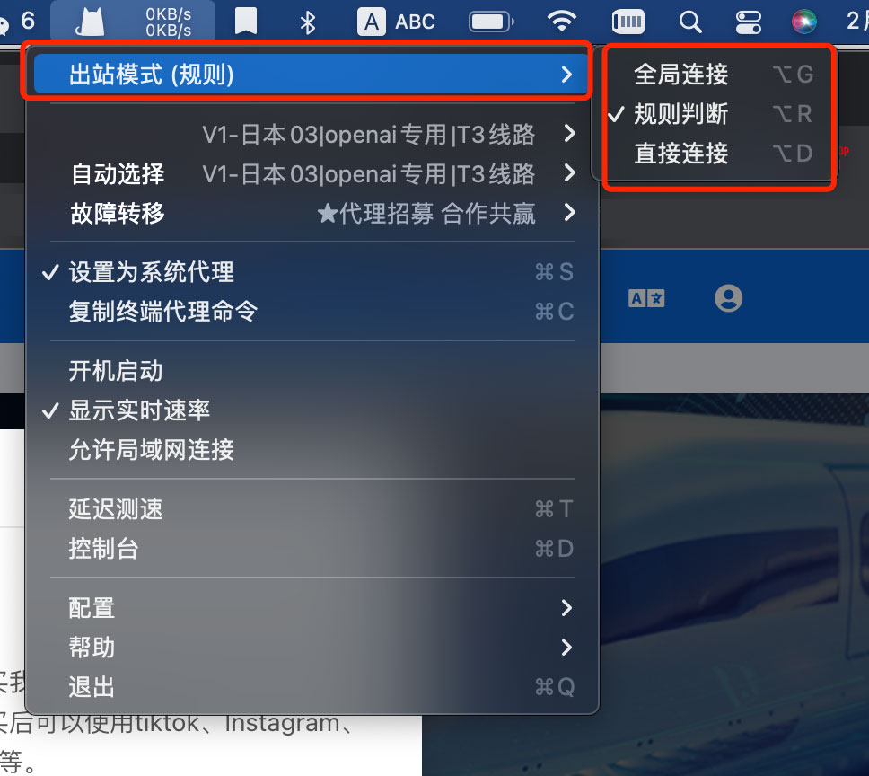 4.6 出战规则这里有规则模式 全局链接,设置为系统代理这里要打勾