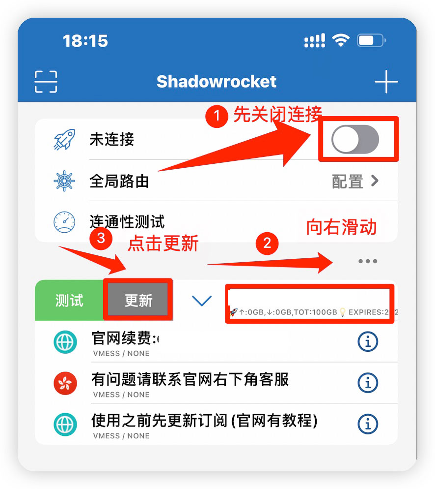 ## 由于部分用户,长期不更新订阅,可能导致无法体验最新的节点,请各位查看下方文字图片教程更新节点信息! ## ios更新节点方法 ### 1. 打开 Shadowrocket ### 2. 依次点击底栏: ➤「设置」➤「服务器订阅」,将「打开时更新」和「自动后台更新」开启,这样 Shadowrocket 就能自动更新订阅了  ### 安卓更新节点方法  ### Windows电脑更新节点方法  ### Mac更新节点方法 ### 1. 点击通知栏 ClashX 图标保持选中状态,按快捷键 「⌘」+「U」(更新托管配置快捷键)可快速更新订阅。请每天或者有空就更新一下订阅,我们会不定期调整接入点,如若不更新订阅,您的客户端的配置还是旧的会严重影响您使用。如果因为您的订阅太旧导致无法连上互联网,请先取消选中「设置为系统代理」,然后再尝试手动更新订阅。